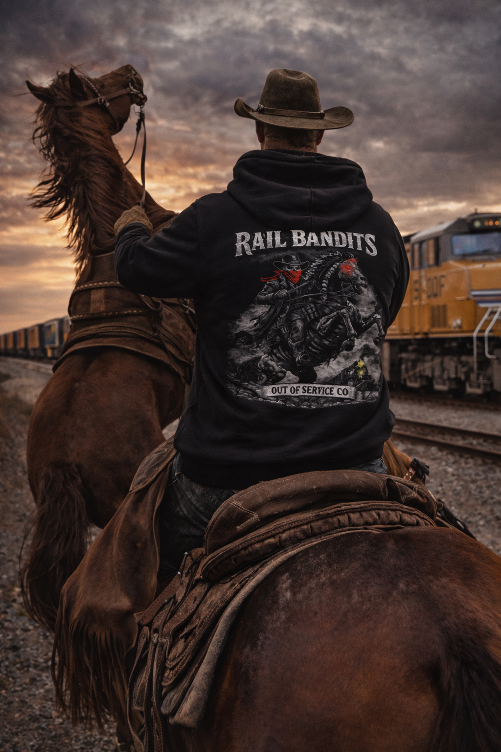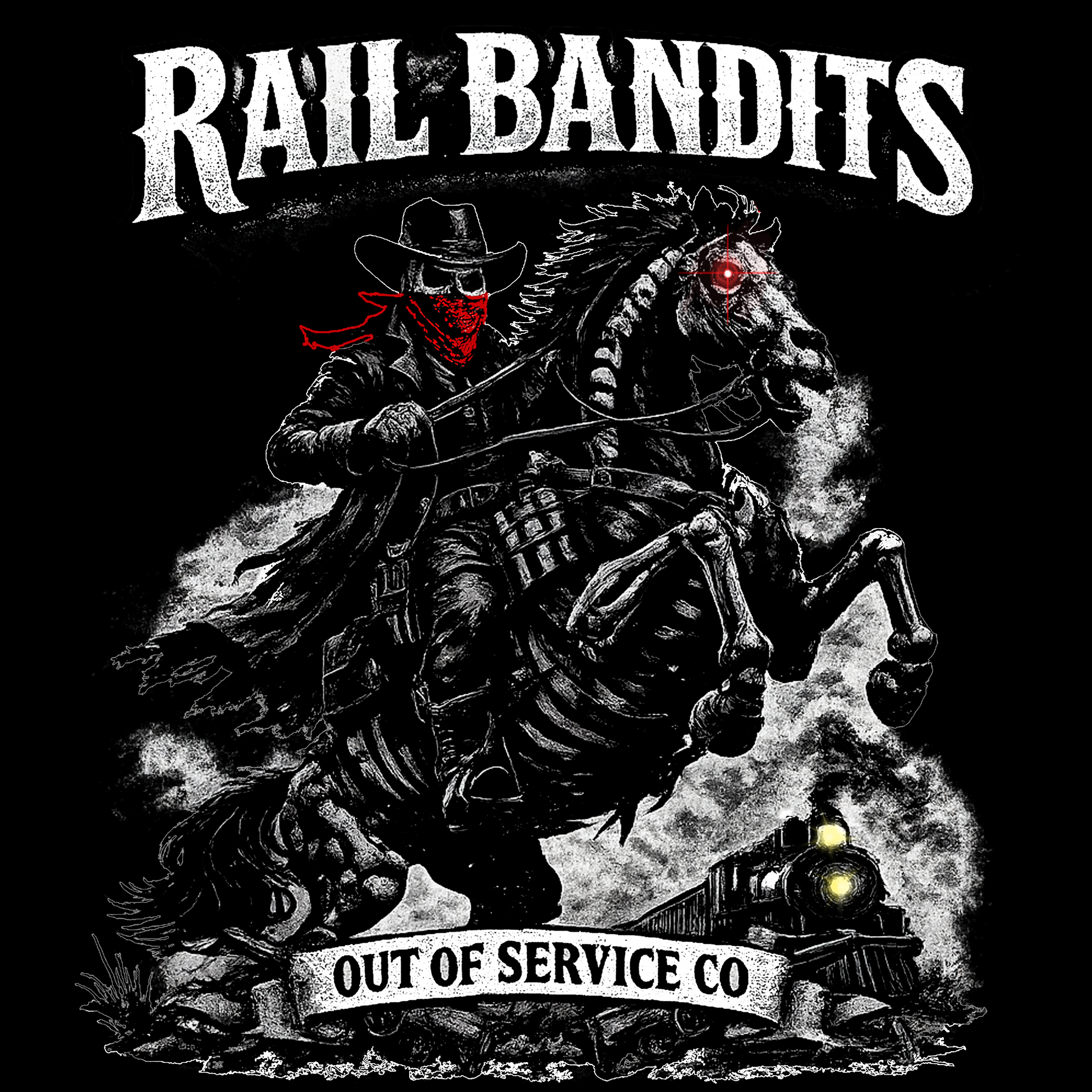 Inspired by outlaw railroad culture and the legendary Ghost Rider mythos, this design captures the raw spirit of the rail bandits who roamed the county lines. Bold imagery merges classic Americana with supernatural edge, creating a striking visual statement for those who appreciate gritty, unconventional aesthetics. Perfect for enthusiasts of railroad history, motorcycle culture, and vintage Americana. A wearable tribute to the rebels and rogues of the rails.