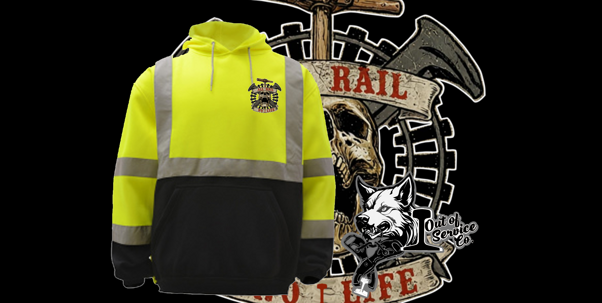 This high-visibility orange and green sweatshirt combines safety and durability with a modern, rugged design it offers warmth and resilience for demanding environments. Wide silver reflective tape bands across the chest, back, and arms enhance visibility in low-light conditions. Practical features include a front pouch pocket and ribbed cuffs and hem for a secure fit. A bold custom graphic on the back adds a distinctive touch, making this hoodie ideal for those who require both safety and style.